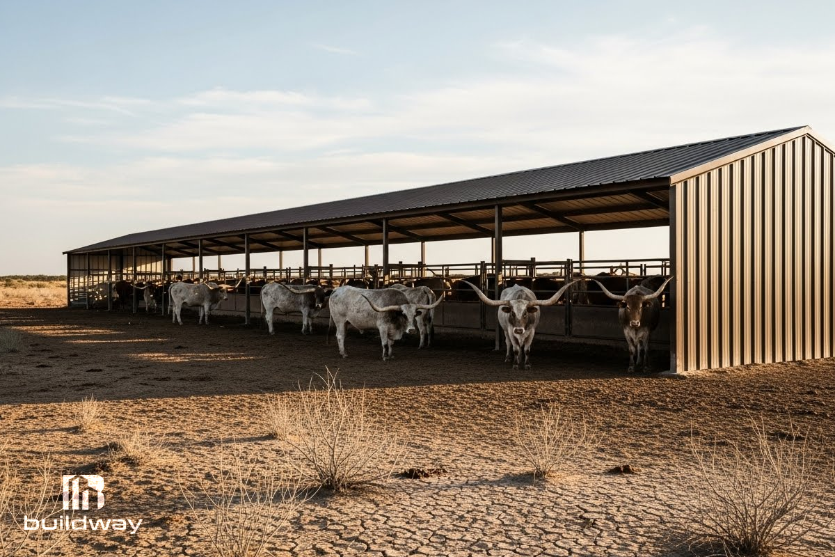 Buildway’s metal livestock barns use premium steel for strong, weather-resistant structures that last for years with minimal upkeep and are perfect for modern farming.